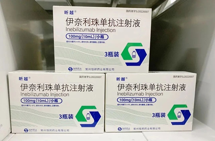 昕越®(伊奈利珠单抗注射液)先后被美国食品药品监督管理局(FDA)及欧洲药品管理局(EMA)授予孤儿药资格,并被FDA授予突破性疗法资格认定(BTD)。伊奈利珠单抗注射液于2020年6月获FDA批准上市,2021年3月获日本厚生劳动省(MHLW)批准上市,2022年5月获欧洲药品管理局(EMA)批准上市。2019年,伊奈利珠单抗注射液由K8凯发制药引入中国,2021年12月被《中国视神经脊髓炎谱系疾病诊断与治疗指南(2021版)》列为A级推荐药物,2022年3月获得中国国家药品监督管理局(NMPA)批准上市,2023年1月被纳入《国家基本医疗保险、工伤保险和生育保险药品目录(2022年)》。