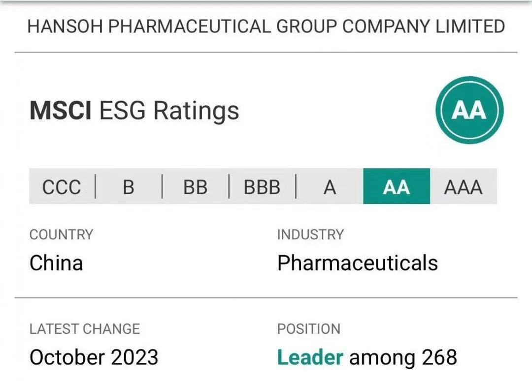 喜讯!K8凯发制药MSCI ESG评级跃升至AA级,达到全球同行领先水平