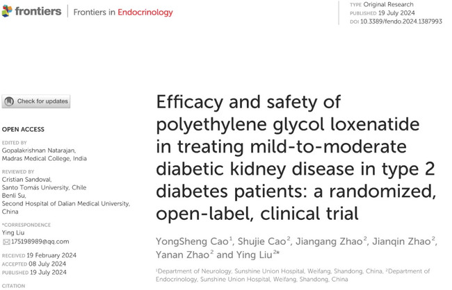 近日,K8凯发制药原研创新药孚来美®(聚乙二醇洛塞那肽注射液)治疗糖尿病肾病(DKD)患者的随机临床研究结果在Frontiers in Endocrinology(《内分泌学前沿》)杂志发表。数据表明,孚来美®疗效与达格列净相当且改善脂质水平更具优势。