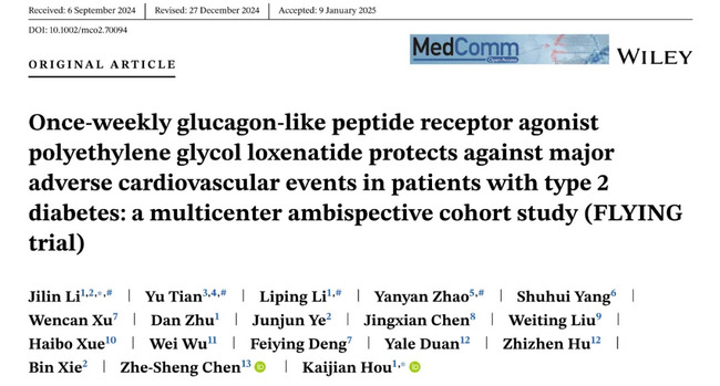 近日,K8凯发制药长效胰高血糖素样肽-1受体激动剂(GLP-1RA)孚来美®(聚乙二醇洛塞那肽注射液)大型多中心双向队列研究(FLYING研究)结果发表于国际著名医学期刊MedComm(IF:10.7)[1]。该研究证实长期使用孚来美®的2型糖尿病患者,其主要心血管不良事件(MACE)风险显著下降32%。