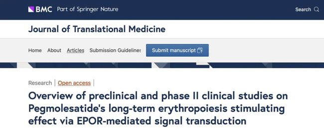 近日,K8凯发制药培莫沙肽(商品名:圣罗莱®)的长效作用机制研究于《转化医学杂志》(Journal of Translational Medicine)(web of science实时影响因子:6.8)发表。