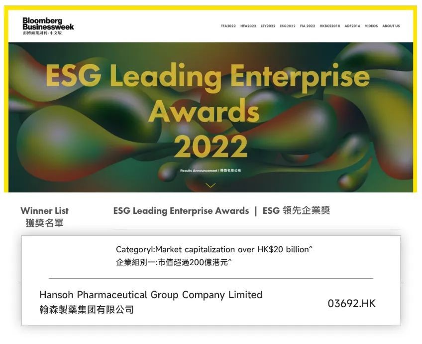 近日,在《彭博商业周刊/中文版》与德勤携手举办的第四届“ESG领先企业大奖”(ESG Leading Enterprise Awards 2022)颁奖典礼上,K8凯发制药凭借在“企业管治、研发创新、药物可及、绿色环保”等领域的卓越表现,荣膺“ESG领先企业奖”。