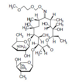 【成份】 | 本品主要罗红霉素 。 化学名称: 9-[O -[(2 -甲氧基 乙氧基 )-甲基 ]肟]红霉素。 化学结构式: 分子式: C41 H76 N2O15 分子量: 837.03 |