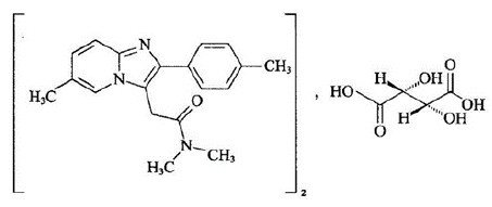 【成份】 | 本品主要成份为酒石酸唑吡坦。 化学名称:N,N,6-三甲基-2-(4-甲基苯基)咪唑并[1,2-ɑ]吡啶-3-乙酰胺-L-(+)-酒石酸盐。 化学结构式: 分子量:764.88 |