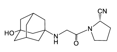 【成份】 | 本品的活性成份为维格列汀。 化学名称:(S)-1-[2-(3-羟基金刚烷-1-基氨基)乙酰基]吡咯烷-2-甲腈 化学结构式: 分子量:303.40 |
