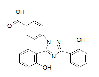 【成份】 | 本品 主要 成份为地拉罗司 。 化学名称: 4-[3,5-双(2-羟基 苯)-1H-1,2,4-三唑 -1-基]-苯甲酸 化学结构式: 分子式:C21H15N3O4 分子量:373.36 |