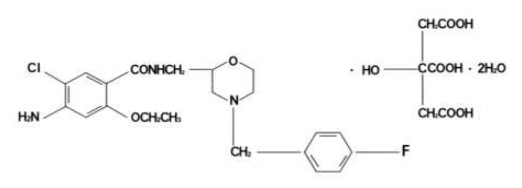 【成份】 | 本品主要成份为枸橼酸莫沙必利 化学名称 :4-氨基 -5-氯-2-乙氧基 - N-[[4 -(4-氟苄基) -2-吗啉基 ]甲基 ]苯甲酰胺枸橼酸盐二水合物。 化学结构式: 分子量: 650.05 |